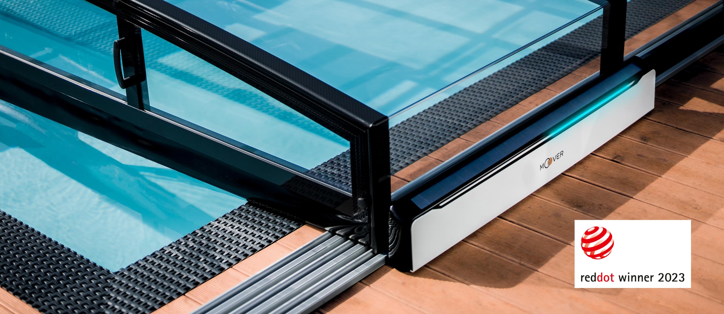 La MOOVER ganó el premio Red Dot en la categoría de diseño de producto, lo que demuestra su excelente diseño y funcionalidad. El jurado destacó cómo el sistema de deslizamiento eléctrico elimina la carga física de mover las cubiertas de piscina y permite al usuario realizar esta tarea fácil y cómodamente.