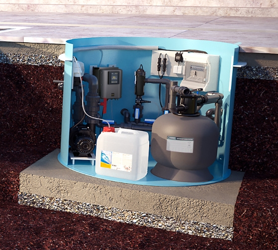 Para facilitarle la elección, hemos preparado pozos tecnológicos completos, equipados con componentes de calidad, que solo hay que conectar a la piscina y a la fuente de alimentación. De ese modo, no tendrá que preocuparse de averiguar qué accesorios son los más adecuados para su piscina, ¡nosotros ya lo hemos hecho por usted! Los pozos están situados muy cerca de la piscina, de modo que siempre están al alcance de la mano.