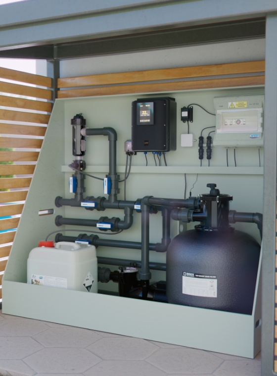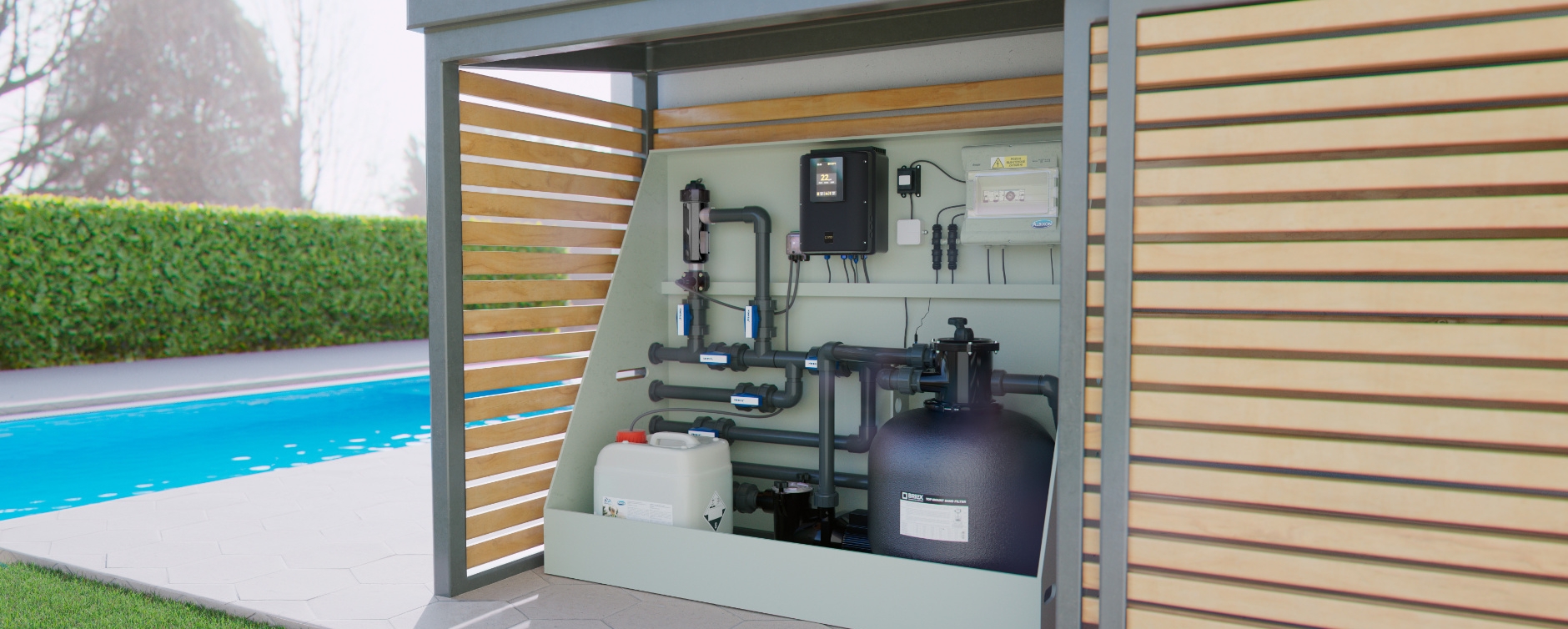 La tecnología de piscinas está alojada en el muro o la caja de la piscina, dependiendo de la opción que elija.