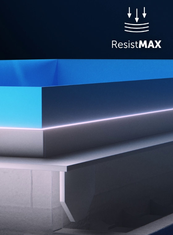 ResistMAX es una tecnología patentada que garantiza una resistencia extrema incluso en condiciones exigentes. La piscina mantiene su forma, color y funcionalidad a lo largo del tiempo. Resiste cargas mecánicas, cambios de temperatura y uso diario.