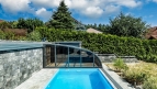 Una vez terminada la construcción del chalé, la familia K. quería poder relajarse en la piscina directamente en su jardín. Así que el Sr. K. decidió comprar una piscina. Junto con la cubierta adosada DALLAS hecha a medida, la piscina es también un elemento de diseño del jardín y, además, permite bañarse casi todo el año. ¿Y por qué eligieron una piscina de plástico? "Era la que más se ajustaba a nuestras preferencias. No queríamos una hoja plástica, una piscina laminada era más cara y no tenía el color que queríamos", añade.